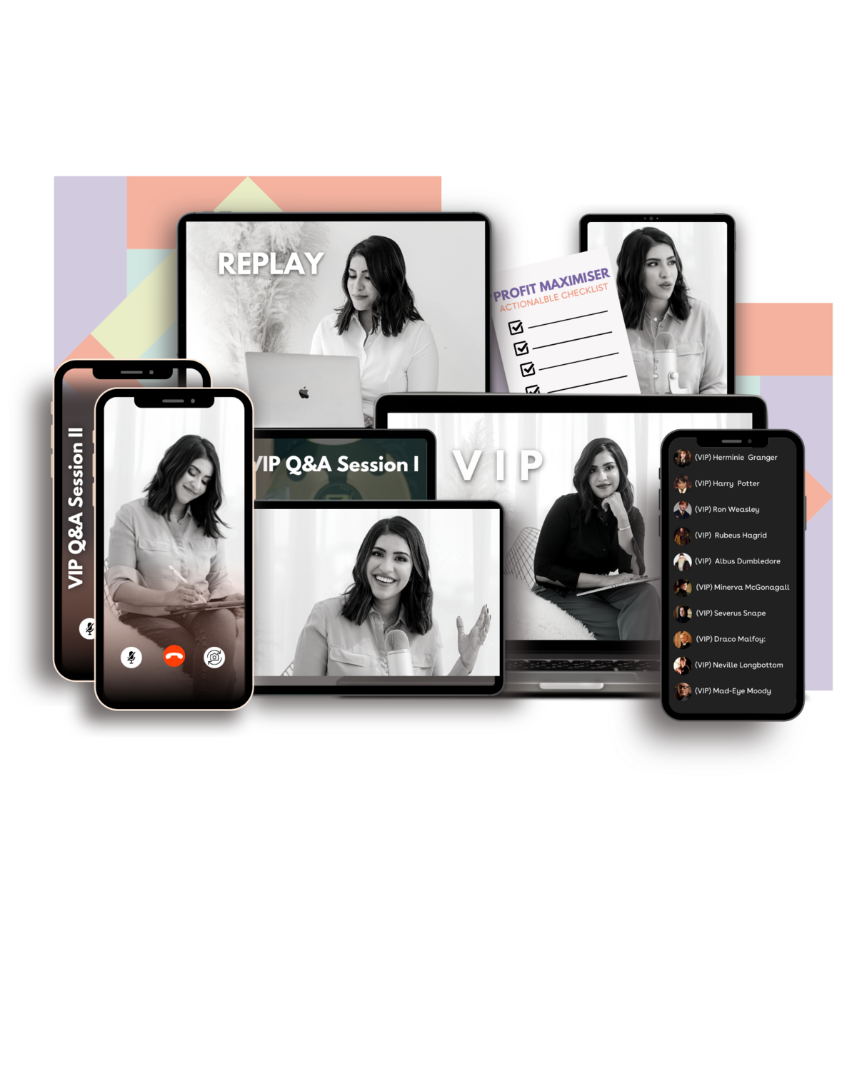 VIPs receive the exclusive chance to get coached directly by Roota in a private Zoom room. In this coaching session you can get your offer, funnel and strategies reviewed and audited by her first-hand, “on priority”.